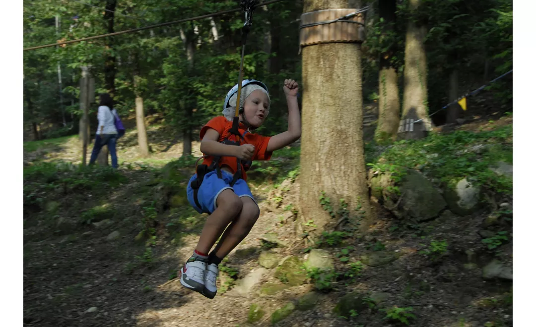 Im Abenteuerpark gibt es 3 Parcours für Kinder von 2 bis 4 Jahren, 4 Parcours für Kinder von 4 bis 8 Jahren und weitere 5 Parcours für Jugendliche und Erwachsene. Aber das ist noch nicht alles: Hier können Sie an einer kleinen Kletterwand, die für jeden geeignet ist, Ihre Fähigkeiten unter Beweis stellen.