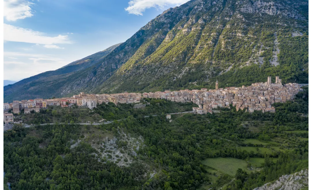Dort erhalten Sie die „Charta Peregrini“, eine Art Ausweis, auf dem die Etappen markiert sind, die von den Wanderern auf dem Weg passiert werden. Die Route der ersten Etappe ist einfach, mit einem Höhenunterschied von 300 Metern und der Ankunft, zwischen bewirtschafteten Feldern und Trockenmauern, in dem mittelalterlichen Dorf Pacentro.