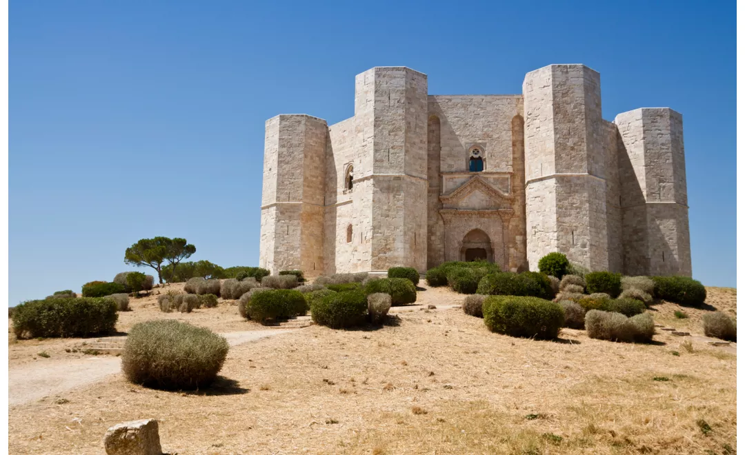 Das achteckige Castel del Monte dominiert die Murgia von Andria von der Spitze eines Hügels aus, der sich bis auf fast 540 Meter Höhe erhebt: eine Position, die als spektakulär zu bezeichnen, eine Untertreibung wäre. Man erkennt ihn schon von weitem, mächtig und massiv, mit einer ungewöhnlichen Form, die an die Silhouette einer Krone erinnert, Symbol der kaiserlichen Macht Friedrichs II. und auch seines individuellen Genies, zumindest wenn man den Quellen Glauben schenkt, die ihm auch die Planung des Gebäudes zuschreiben. Es scheint, dass Friedrich, der 1250 starb, es nicht fertiggestellt gesehen hat und wahrscheinlich nicht einmal Zeit hatte, dort zu übernachten. Und doch ist dies das Gebäude, das mehr als jedes andere seine faszinierende Figur als kosmopolitischer, gebildeter und charismatischer Herrscher hervorruft: ein perfektes Denkmal, das einen sprachlos macht und wirklich zu der Annahme führt, dass Friedrich II. der Stupor mundi war. Aufgrund seines rätselhaften Charmes, der durch die Landschaft noch verstärkt wird, hat sich Castel del Monte natürlich als eines der Wahrzeichen Apuliens und gleichzeitig einer ganzen Epoche der Geschichte, dem italienischen und europäischen Mittelalter, etabliert und sich die Aufnahme in die Liste des UNESCO-Weltkulturerbes verdient.