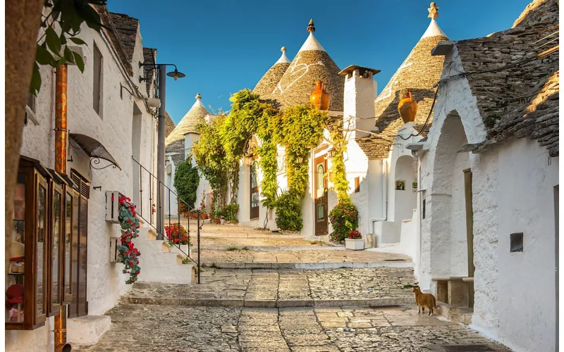Es mag an der weißen Farbe der Gebäude liegen oder an der Vegetation, die sie umfängt, aber jede Ortschaft, jedes Dorf im Tal ist von einer magischen, fast märchenhaften Atmosphäre umgeben. Im Herzen des Valle d'Itria ist Alberobello mit seinen Trulli ein Muss, das 1996 von der UNESCO in die Weltkulturerbe-Liste aufgenommen wurde. Niemand entgeht der Faszination der Straßen in den Vierteln Monti und Aja Piccola. Aber es gibt nicht nur Alberobello. Die Landschaften der gesamten Region sind mit diesen typischen Gebäuden übersät: Man denke nur an Cisternino, das in der sogenannten Murgia dei Trulli liegt und zusammen mit dem nahe gelegenen Locorotondo zu den schönsten Orten Italiens zählt. Letzteres Dorf, das wegen seiner charakteristischen runden Form bis Mitte des 19. Jahrhunderts „Luogorotondo“ (was so viel wie „runder Ort“ bedeutet) genannt wurde, ist Teil von La Terra dei Trulli. Ein absolutes Muss ist eine „Reise zum Mittelpunkt der Erde“, zu den Grotten von Castellana (in der Gemeinde Castellana Grotte), wo die Grave, die erste und größte Höhle sowie die einzige, die mit der Außenwelt verbunden ist, sowie die Weiße Grotte Besuchern den Atem verschlagen.