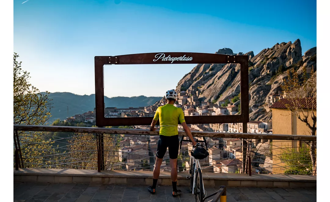 Der Ausgangspunkt ist Castelmezzano, ein kleines Juwel inmitten der Felsen und eines der schönsten italienischen Städtchen. Sein Ruhm ist auf den Flug des Engels zurückzuführen: Hier können Sie einen Adrenalinschub erleben, mit dem Bauch nach unten angeschnallt und an einem Seil hängend, und bis nach Pietrapertosa fliegen, wobei Sie in etwas mehr als einer Minute eineinhalb Kilometer mit einer Geschwindigkeit von bis zu 120 km/h zurücklegen. Nach 8 km gemischter Strecke entfaltet sich Pietrapertosa in all seiner Schönheit vor Ihnen. Auf dem nackten Felsen erbaut, der es wie eines der wertvollsten Juwelen zu bewahren scheint, schlängelt sich dieses Dorf mit seiner Natur als Festung bis zur alten sarazenischen Burg.
