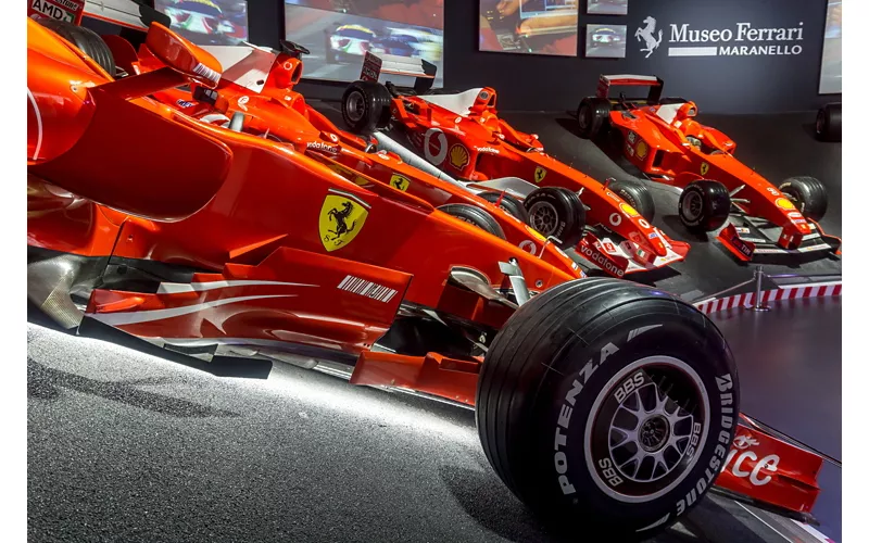 Einige der zahlreichen Ausstellungsräumen sind auch der Formel 1 gewidmet sind, die den Fans des Cavallino schon immer viel Freude bereitet hat. Angefangen bei der Halle der Siege, in der die Erfolge der „Scuderia“ mit der Ausstellung der Weltmeister-Einsitzer von 1999 bis 2008, den 110 Trophäen und den Originalhelmen der neun Weltmeister wie Villeneuve, Berger, Mansell, Michael Schumacher und Prost gefeiert werden. Hier können Sie eine Vielzahl von Gegenständen dieser Rennfahrer bewundern: vom Helm bis zu den Handschuhen, von den Overalls bis zu den Schuhen.