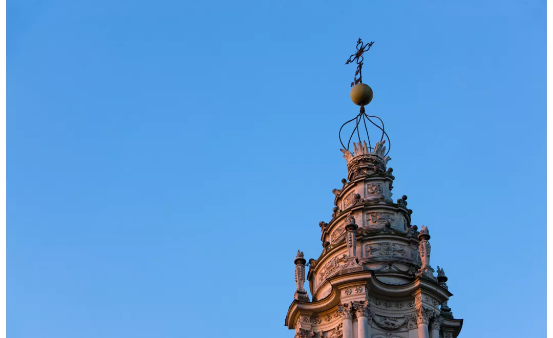 Im 17. Jahrhundert wurde der Palazzo della Sapienza, der gerade erst erbaut worden war, mit einer eigenen Kirche ausgestattet, die architektonisch zwar klein, aber dennoch prächtig war und die Basilika Sant'Eustachio als religiösen Bezugspunkt für die Dozenten des Studium Urbis (der römischen Universität, die 1632 offiziell in Studium Urbis Sapientiae umbenannt wurde) ersetzen sollte. Es handelt sich um die Kirche S. Ivo alla Sapienza, die von Francesco Borromini entworfen und 1660 geweiht wurde. Sie erhebt sich an der unteren Seite des zentralen Innenhofs des Palastes: Ihre unverwechselbare Kuppel, die von einer Vierung mit konvexen Seiten umgeben ist, wird von einer Laterne überragt, die mit einer Spirale verziert ist, die ihre Schwungkraft und Dynamik unterstreicht. Sie gilt einstimmig als Meisterwerk des Barocks und ist dem Heiligen Ivo Hélory (1253-1303) gewidmet, einem hochgebildeten französischen Anwalt, der die Armen in Prozessen kostenlos unterstützte. Heute ist es die Kirche des Kulturzentrums Paul VI. in Rom, die junge Menschen und Erwachsene, Universitätsstudenten und Fachleute einlädt, den Dialog zwischen Glauben und Kultur zu vertiefen: Die Widmung an Paul VI. ist kein Zufall, denn hier, in der Rektorie von S. Ivo, war der zukünftige Papst Giovanni Battista Montini Seelsorger der FUCI, der Italienischen Katholischen Universitätsföderation. Die Universität La Sapienza, die bis 1935 im Palazzo della Sapienza untergebracht war, hat den Charakter des Viertels S. Eustachio tief geprägt: Eines der kuriosesten Zeugnisse ist der Brunnen der Bücher in der nahe gelegenen Via degli Staderari, der das ungewöhnliche Motiv von zwei Bücherstapeln zeigt, die die Rohre halten, aus denen das Wasser fließt.
