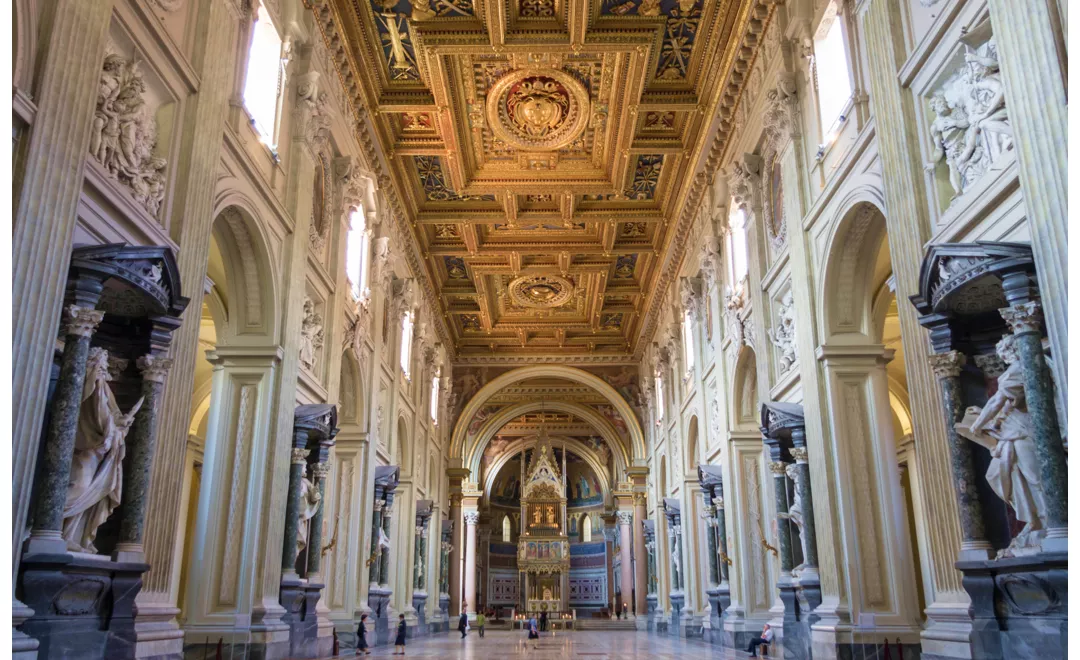 Die Basilika San Giovanni in Laterano ist die älteste der vier päpstlichen Basiliken, die Kathedrale von Rom und der Bischofssitz, der als „Mutter und Oberhaupt aller Kirchen der Stadt und der Welt“ gilt. Sie wurde an der gleichen Stelle wie die von Konstantin im 4. Jahrhundert errichtete Basilika erbaut, aber vom ursprünglichen Gebäude ist nur noch wenig übrig. Das heutige Aussehen stammt größtenteils aus dem 17. Jahrhundert und der barocke Stil des Inneren ist vor allem auf die Arbeit von Francesco Borromini zurückzuführen.