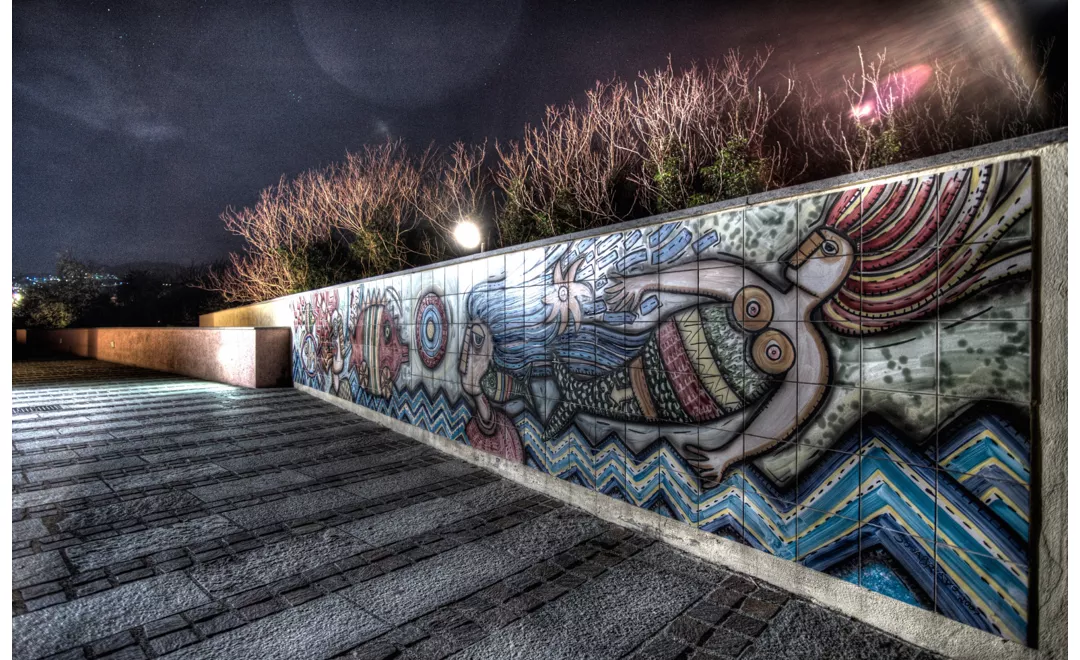 Hier, der alten Bahnstrecke folgend, spaziert man mit den Augen geblendet von dem Kaleidoskop der Formen und Farben der zeitgenössischen Majoliken, die sich vor dem Hintergrund der Palmen und des Meeres abheben: Es ist ein Keramikteppich, der von der Fantasie verschiedener Künstler geschaffen und von den Öfen von Albisola für die Biennale der zeitgenössischen Keramikkunst im Jahr 2001 hergestellt wurde.