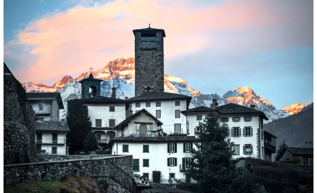 Wenn man von der kleinen Kirche der Dreifaltigkeit aus dem 16. Jahrhundert im Weiler Ripa Alta über den alten Saumpfad nach Gromo hinuntergeht, sieht man eine schützende Schieferdecke, die sich über die Häuser erstreckt: Es sind die Piodes, die die Dächer bedecken und zusammen mit den gepflasterten Gassen (den Strécie), den Steinportalen, den kunstvollen Geländern und den Türmen dem mittelalterlichen Dorf seinen Charme verleihen. In Gromo gibt es viele Türme, die von den Familien errichtet wurden, die mit dem Abbau von Eisen aus den Minen ein Vermögen gemacht haben, um daraus Schwertklingen herzustellen. Es gibt den Wehrturm der Burg Ginami, der im 16. Jahrhundert in den Besitz dieser Familie überging, aber 1246 von den Buccelleni zu militärischen Zwecken auf einem Felsvorsprung erbaut wurde, um das Dorf zu bewachen. Es gibt den Turm des Palazzo Milesi, der 1456 auf der Piazza Dante errichtet wurde und heute das Rathaus beherbergt: ein Gebäude mit doppelter Loggia, Renaissance-Sälen, Fresken aus dem 17. Jahrhundert und der grauen Marmorfassade aus den Steinbrüchen von Ardesio. Es gibt die Burg der Familie Priacini, von der ursprünglichen Konstruktion aus dem 14. Jahrhundert ist nur der Turm des Lavanderio erhalten, der von einigen als noch älter angesehen wird, vielleicht langobardisch. Schließlich bewacht der stämmige Turm Cittadini, auch bekannt als Torre degli Olivari, den Zugang zu den Lagerstätten und den Pässen in den Höhenlagen. Er wurde im 11. bis 12. Jahrhundert aus großen quadratischen Blöcken aus lokalem Stein erbaut.