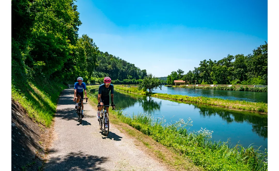 Verlassen Sie den Naviglio Grande und fahren Sie auf dem Naviglio di Bereguardo durch die lombardische Landschaft bis zum Dorf Morimondo, wo sich die Zisterzienserabtei befindet, ein Ort der Anbetung und ein architektonisches Juwel. Überqueren Sie die berühmte Brücke der Boote, eine schwimmende Brücke, die aus Booten und Lastkähnen gebaut wurde und als Drehort für mehrere Filmsets diente. Der Eingang nach Pavia erfolgt über die historische überdachte Brücke von Borgo Ticino. Besuchen Sie hier das Schloss Visconti, ein Symbol für Reichtum und Macht, umgeben von einem wunderschönen Park, der es mit der Certosa di Pavia, einem Juwel der Renaissance, verband. Pavia ist eine Stadt mit einem reichen historischen, künstlerischen und önogastronomischen Erbe und ein Kreuzungspunkt zahlreicher Wanderwege. Sie steht in direkter Verbindung mit dem Radweg Vento (Teil der Routen Eurovelo 8 - Mediterranean Route und Eurovelo 5 - Via Romea Francigena).