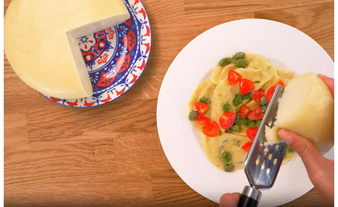 Tortellacci mit Casciotta d'Urbino g.U., Artischocken und Saubohnen mit dem Duft von wildem Fenchel