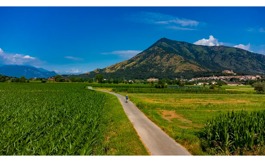 Von hier aus schlängelt sich der Weg durch die Ebene von Caselette und Almese, zwischen bewirtschafteten Feldern und weiten Grasflächen, wobei sich unbefestigte Straßen mit Abschnitten entlang des Dora-Ufers abwechseln, bis man das Gewerbegebiet von Avigliana erreicht. Mit einem kurzen Abstecher können Sie das Museum Ex Dinamitificio Nobe besuchen, das der Geschichte und dem Gedenken an die ehemalige Industrieanlage gewidmet ist, in der Dynamit und andere Sprengstoffe hergestellt wurden, und den Naturpark der Seen von Avigliana, wo der Lago Grande und der Lago Piccolo die ideale Kulisse für Sport- und Freizeitaktivitäten bieten. Zurück auf dem Radweg bietet sich auf diesem Abschnitt ein Panorama, in dem die Sacra di San Michele im Mittelpunkt steht: die Abtei, die Umberto Ecos meisterhaften Roman Der Name der Rose inspirierte und die Sie vom Gipfel des Monte Pirchiriano auf fast 1.000 Metern Höhe bis zur Talmitte begleitet.