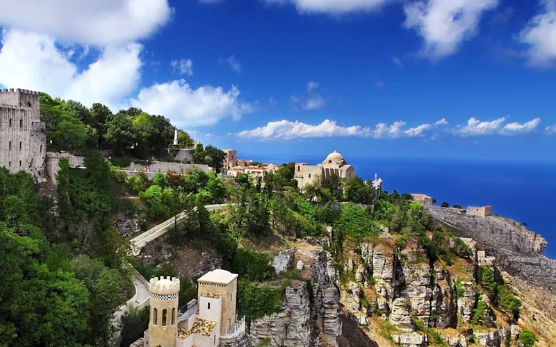 Weinliebhaber finden in Trapani den idealen Ort für eine Weinprobe. Zwei Orte sind einen Besuch wert: Marsala, nach dem der Likörwein (DOC) benannt ist, der in dieser Gegend produziert wird, und Alcamo, wo der gleichnamige DOC-Wein hergestellt wird. In einer Höhe von 750 Metern, auf dem Monte San Giuliano, liegt das bezaubernde Dorf Erice. Eine Mischung aus Mythos und Geschichte durchströmt die Gassen dieses Ortes, der jahrhundertelang von den Elymern bis zu den Puniern, von den Römern bis zu den Byzantinern, von den Arabern bis zu den Normannen beherrscht wurde. Ein Besuch in Erice ist nicht nur wegen der alten Schätze, sondern auch wegen der atemberaubenden Aussicht auf die Küste ein Muss.