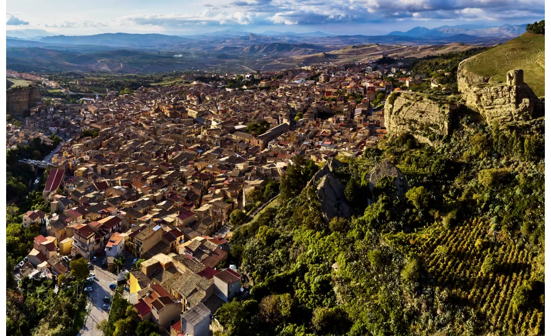 Der Palazzo Bentivegna blickt auf die Piazza Garibaldi, das Zentrum der Stadt, von dem aus man zur Kirche S. Martino (der Mutterkirche) gelangt. Die Kirche wurde Ende des 16. Jahrhunderts auf einem früheren Bauwerk aus der Zeit vor dem Jahr 1000 errichtet. Unter dem mit Fresken bemalten Gewölbe triumphiert das goldene Gelb zwischen den Blautönen der Dekorationen. Von der Sakristei aus gelangt man zum Tesoro di S. Martino, einer Dauerausstellung sakraler Kunst, die Werke von großem Wert umfasst. Von der Piazza Garibaldi aus nehmen Sie die Via Roma, um die imposante Barockfassade der Kirche S. Domenico zu bewundern, und gehen dann weiter auf der Via XXIV Maggio bis zur Kirche S. Rosalia und biegen in die Via Lombardia ein. Nach einem kurzen Spaziergang erreichen Sie die Gasse Vicolo Rocche: Zu Ihrer Rechten sehen Sie den Blick auf die Felswände der Schlucht von Corleone und das ehemalige Kloster des Heiligen Erlösers. Wenn Sie die kleine Kirche Madonna delle Due Rocche erreicht haben, können Sie den Schildern folgen, um den Weg zu nehmen, der zum Wasserfall Cascata delle Due Rocche führt, einer friedlichen Ecke inmitten der Natur, nur wenige Minuten vom historischen Zentrum entfernt.