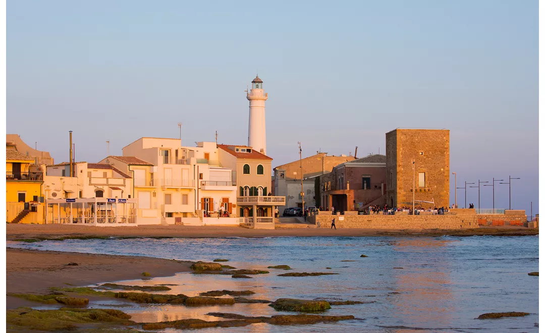 In der Fernsehserie ist dieser Ort als Marinella bekannt, der Zugang zum Meer des imaginären Dorfes Vigàta, aber wir befinden uns tatsächlich in Punta Secca, einem Ortsteil der Gemeinde S. Croce Camerina, auf dem kleinen Platz der Torre Scalambri.
