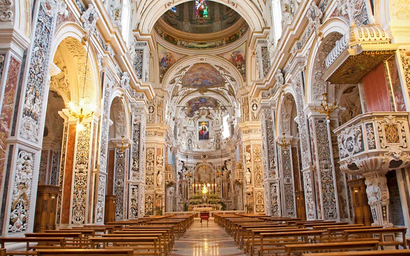 Das Viertel der Albergheria am Rande des Marktes von Ballarò ist ein beeindruckendes Beispiel für den Aufschwung des Barocks. In der Nähe befindet sich die Chiesa del Gesù, die von den Einwohnern Palermos Casa Professa genannt wird. Sie ist mit ihren üppigen, auffälligen und großzügigen Formen zweifellos eine der bedeutendsten Ausdrucksformen dieser Barockkunst, die hier ihre reichsten, redundantesten und auffälligsten Formen kennengelernt hat. Stuckarbeiten, Fresken, Marmorgemische, die alle von den berühmtesten Meistern der Kunst und der Skulptur des 17. und 18. Jahrhunderts geschaffen wurden, machen sie zu einer der prächtigsten Kirchen Siziliens.