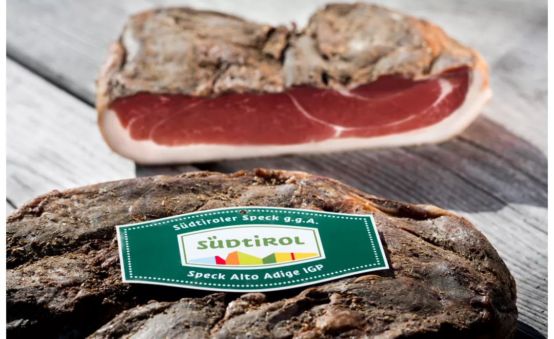 Das Rezept wurde von den Familien aufbewahrt, denn bis heute machen die alten Traditionen, die durch die Jahrhunderte überliefert wurden, den Speck zu etwas Besonderem. Eine echte Kultur, die in einem Gebiet bewahrt wird, in dem die Natur reine Luft und 300 Sonnentage im Jahr bietet: Hier treffen die alpine und die mediterrane Seele aufeinander und treten in eine besondere Verbindung ein. Nördlich der Alpen wird der Rohschinken durch Räuchern konserviert, während er weiter südlich an der Luft trocknen gelassen wird: Die Südtiroler haben für ihren Speck die beiden Methoden kombiniert.
