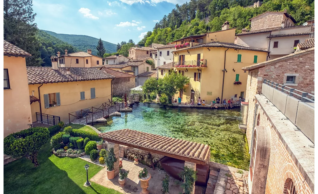 Ausgehend vom Mittelpunkt der Route, Rasiglia, an der Staatsstraße 319 von Sellano, bereitet man sich mit dem Rucksack auf dem Rücken auf einen Tag vor, um zu Fuß die Umgebung zu entdecken. Kaum hat man das Dorf betreten, stößt man auf die Römische Brücke, die im 3. Jahrhundert v. Chr. aus Stein erbaut wurde. Die Brücke überquert den Fluss Menotre und bietet einen atemberaubenden Blick auf die umliegende Natur. Von hier aus geht es bis zur Quelle des Flusses auf dem Hauptplatz des Dorfes. In der Mitte befindet sich ein alter, mit einem schönen Keramikmosaik verzierter Brunnen, der noch immer in Betrieb ist und bis zum 18. Jahrhundert die wichtigste Wasserquelle des Dorfes war. Es empfiehlt sich, einen Zwischenstopp bei der Wassermühle von Rocchetta einzulegen. Die alten Mühlsteine und Geräte zur Weizenverarbeitung, die man hier sehen kann, stammen aus dem 18. Jahrhundert. Weiter vorne befindet sich das Museo delle Acque (Wassermuseum). In der ehemaligen Kirche San Salvatore kann man eine große Sammlung alter Gegenstände und Geräte bewundern, die für die Wasserwirtschaft in Umbrien verwendet wurden. Dann erreichen Sie den Wanderweg Sentiero del Menotre, der entlang des Flusses einen herrlichen Blick auf die umliegende Natur sowie auf die anderen Wunder des Dorfes bietet, die Sie nicht verpassen sollten.
