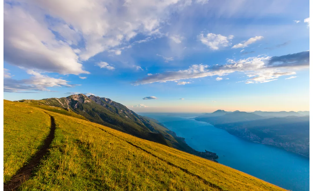 Unmittelbar nach Torri del Benaco beginnt der Aufstieg zum Monte Baldo. Die Steigungen sind nie übermäßig und der erste Teil des Anstiegs erreicht das Dorf Albisano auf 309 Metern Höhe, zwischen Feldern mit Olivenbäumen und einer typisch mediterranen Landschaft. Nach Albisano geht es sanft weiter hinauf nach San Zeno di Montagna, das als Balkon des Gardasees bekannt ist. Es bietet einen 360-Grad-Blick auf den See, die Hügel, die Kiefern- und Kastanienwälder und die Gipfel des Monte Baldo.