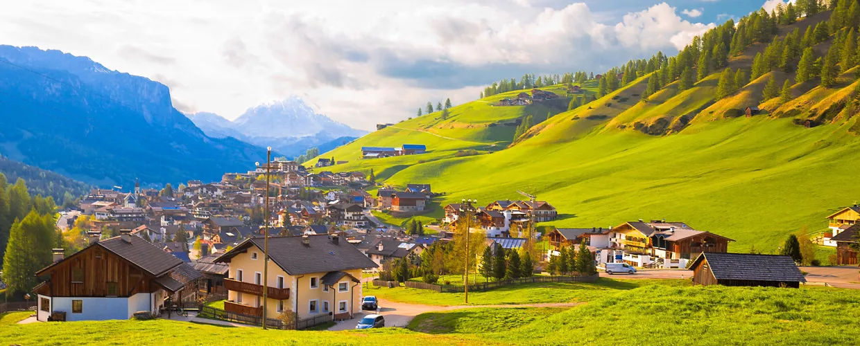 Encantador pueblecito a 1500 metros de altitud, enclavado entre los macizos de Lavarella, Conturines, Lagazuoi y Settsass, San Cassiano es el punto de partida de hermosas excursiones por Alta Badia.