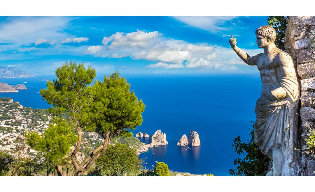 La dernière île à visiter lors de ce voyage dans le golfe de Naples est Capri, résidence d'été convoitée depuis les temps anciens, et terre de poètes, d'écrivains et de personnages légendaires. La célèbre Piazzetta di Capri est le point de départ classique pour visiter l'île. Tout est superbe à Capri : des jardins spectaculaires d'Auguste des années trente, à la Chartreuse de San Giacomo, jusqu'aux merveilleuses villas fleuries, dont la Villa Jovis, célèbre résidence de l'empereur Tibère, qui domine tout le golfe de Naples, la côte amalfitaine et le port de Marina Grande. Pour ceux qui rêvent d'une mer claire et propre, la célèbre grotte bleue d'Anacapri est une destination incontournable, tout comme les Faraglioni, trois pics rocheux immergés dans la mer qui ont échappé au glissement de terrain de la côte, créant un effet scénographique et paysager spectaculaire. Après le coucher du soleil, les trois îles vivent sous le signe des promenades romantiques et des dîners dans les restaurants typiques avec de délicieuses spécialités locales.