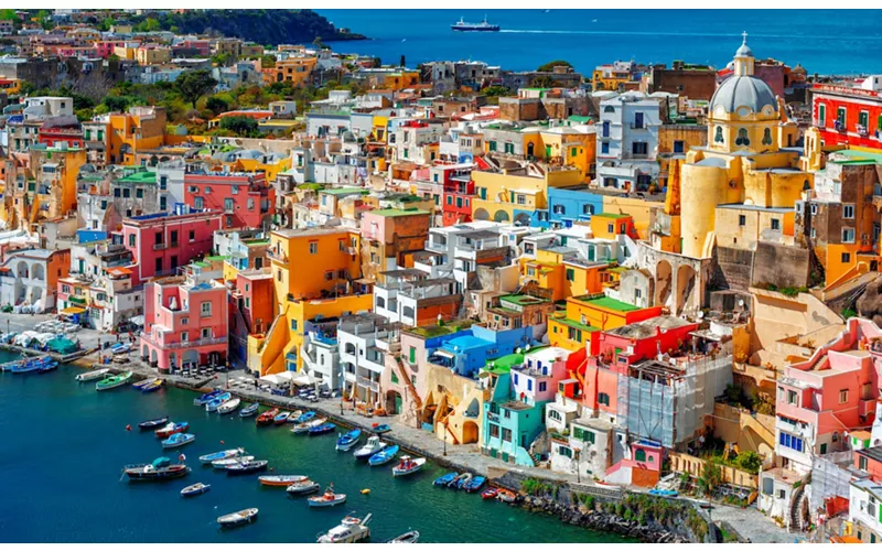 Procida, la plus petite île de l'archipel de la Campanie, a été choisie par de grands cinéastes comme toile de fond idéale pour leurs chefs-d'œuvre cinématographiques. D'origine volcanique, elle est reliée par un petit pont à l'île voisine de Vivara. Pas uniquement la mer. Les ruelles et les églises qui caractérisent le territoire de Procida permettent de combiner la détente de la plage avec la visite des monuments du centre historique datant d'époques antérieures. L'abbaye Saint-Michel-l'Archange qui se dresse sur le promontoire de Terra Murata, surplombant la mer, est remarquable et témoigne du rôle qu'elle a joué dans le passé en tant que centre religieux et culturel de l'île. Deux plages à rejoindre à tout prix : la plage du Pozzo Vecchio qui a été le décor de certaines scènes du film « Il Postino (Le Facteur) », et la plage de la Chiaiolella, la plus fréquentée de l'île.