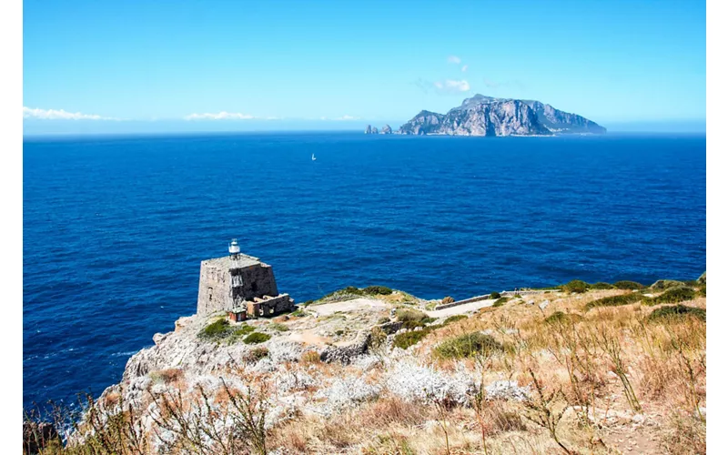 C'est la pointe extrême de la péninsule de Sorrente, qui sépare le golfe de Naples du golfe de Salerne, derrière laquelle commence en effet la côte amalfitaine. Vous pouvez la découvrir à pied en parcourant un sentier naturel immergé dans le maquis méditerranéen : plusieurs points de vue importants, comme celui surplombant la baie de Ieranto peuplée d'oiseaux rares comme le faucon pèlerin et le pic rouge. Selon la légende, Punta Campanella était l'endroit où Ulysse a rencontré des sirènes : la mer agitée en raison des courants rendait la navigation difficile et les bateaux allaient s'échouer sur les rochers car les marins étaient envoûtés par leur chant.