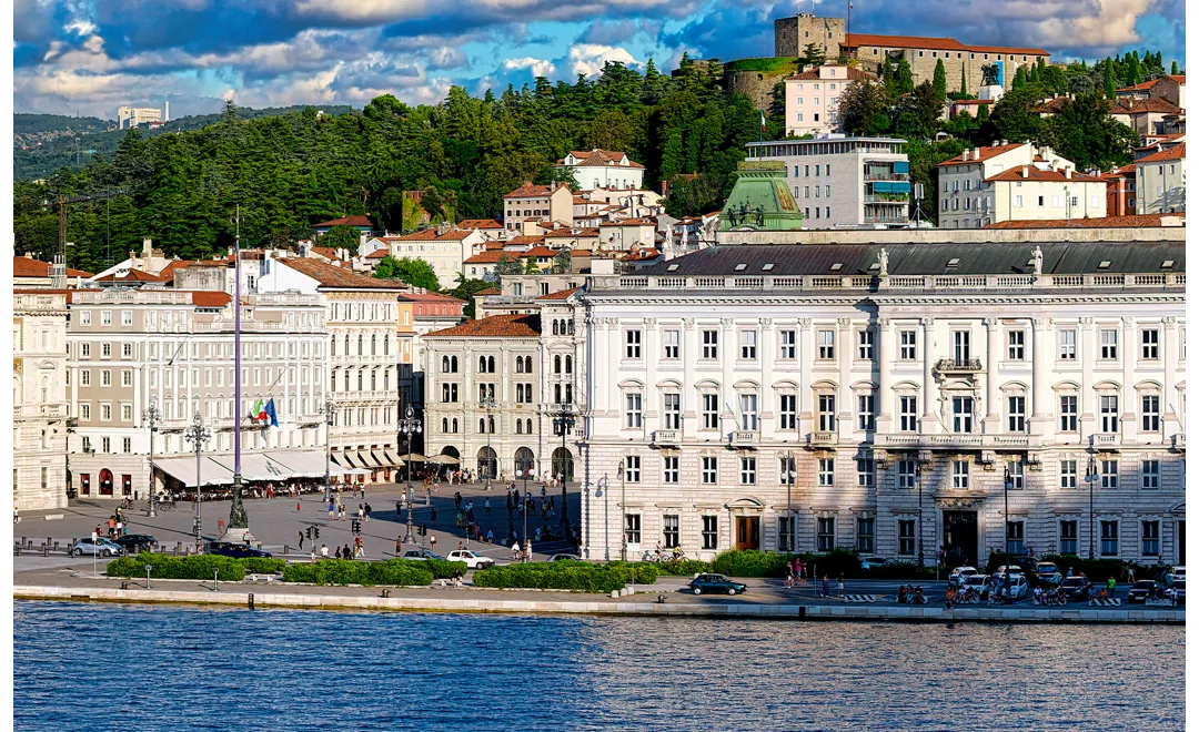 En continuant sur le front de mer, vous découvrirez la perspective incomparable de la piazza dell'Unità d'Italia, la reine du front de mer de Trieste. Sur trois côtés, elle est entourée de somptueux palais, orientée au nord-ouest vers le golfe, elle vous offrira l'une des vues les plus pittoresques de la ville.