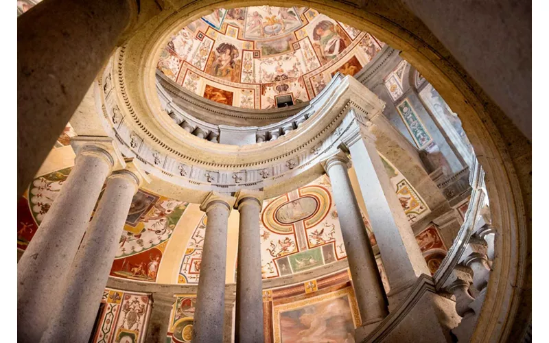 Des jardins verdoyants, des avenues bordées d'arbres, d'anciennes fontaines et de magnifiques jeux d'eau créent un cadre splendide autour du Palais Farnèse. Situé à Caprarola, à 20 km de Viterbe, ce lieu de la fin de la Renaissance conserve à l'intérieur 5 étages décorés de fresques d'artistes différents et de magnifiques solutions architecturales telles que la Scala Regia, un magnifique escalier hélicoïdal qui repose sur 30 colonnes doriques caractérisées par des finitions et des matériaux en marbre précieux. Ce palais majestueux offre un spectacle unique aux amateurs d'art et d'architecture. Un voyage recommandé pour les amateurs d'art et de nature.