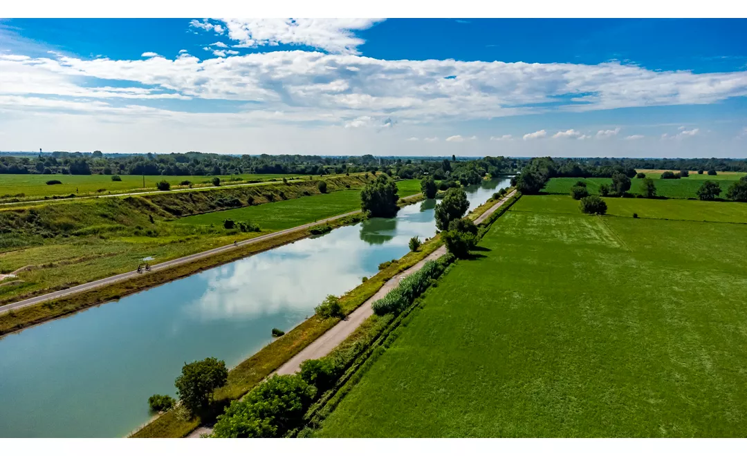Après avoir quitté Mantoue, la piste cyclable continue à droite du Mincio et atteint le Pô, le traverse et arrive à San Benedetto Po, où vous pourrez visiter l'abbaye de Polirone. Ici, le parcours se dirige vers le sud le long de la rive du fleuve et descend encore jusqu'à Moglia, où il franchit la frontière lombarde pour continuer en direction de Bologne.