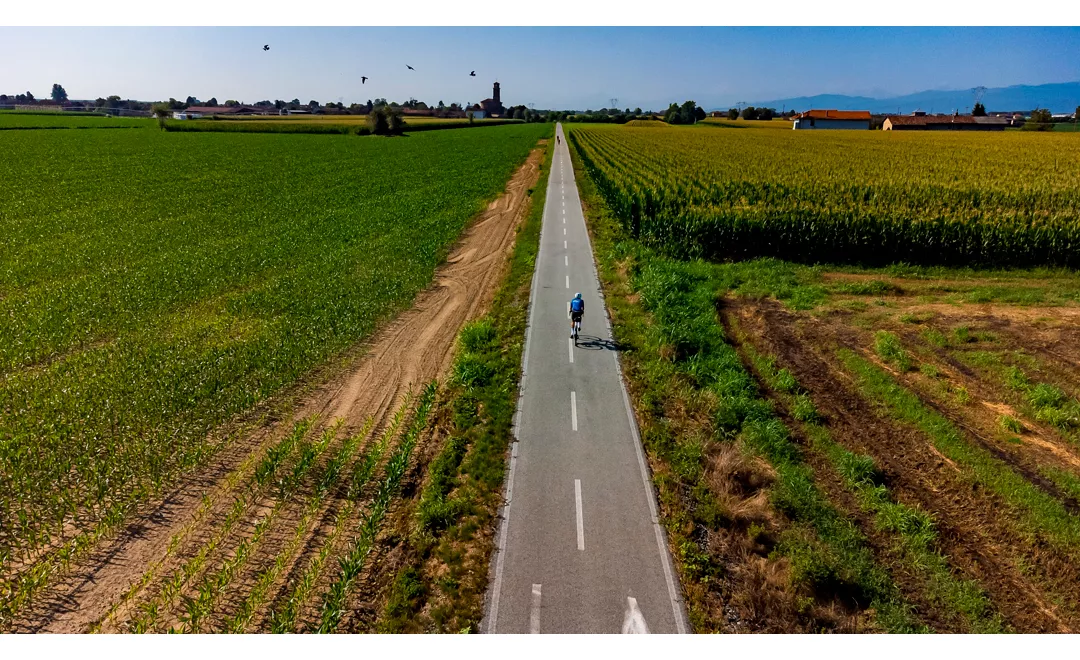 Dès le départ d'Airasca, en empruntant la piste cyclable, la fusion avec le paysage est totale grâce au silence offert par l'ancienne voie ferrée et à la vue, par beau temps, du Monviso, dont le profil majestueux se dresse sur la majeure partie de l'itinéraire.