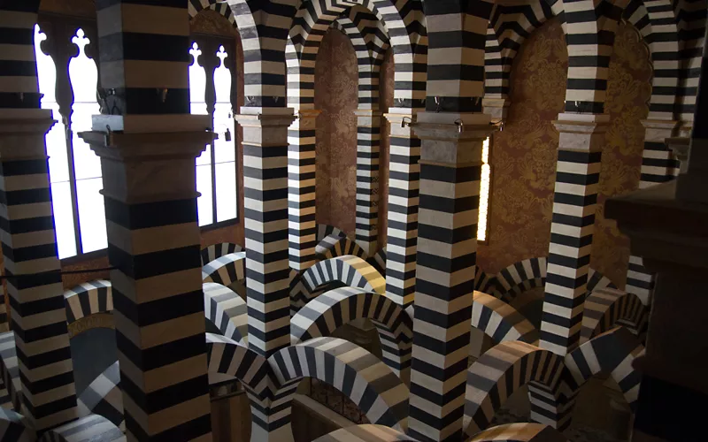Tra le zone della dimora più amate dai visitatori troviamo la Cappella ispirata alla Mezquita, la moschea di Cordoba, che amalgama elementi arabo islamici, come gli archi, con elementi della tradizione architettonica medievale italiana.