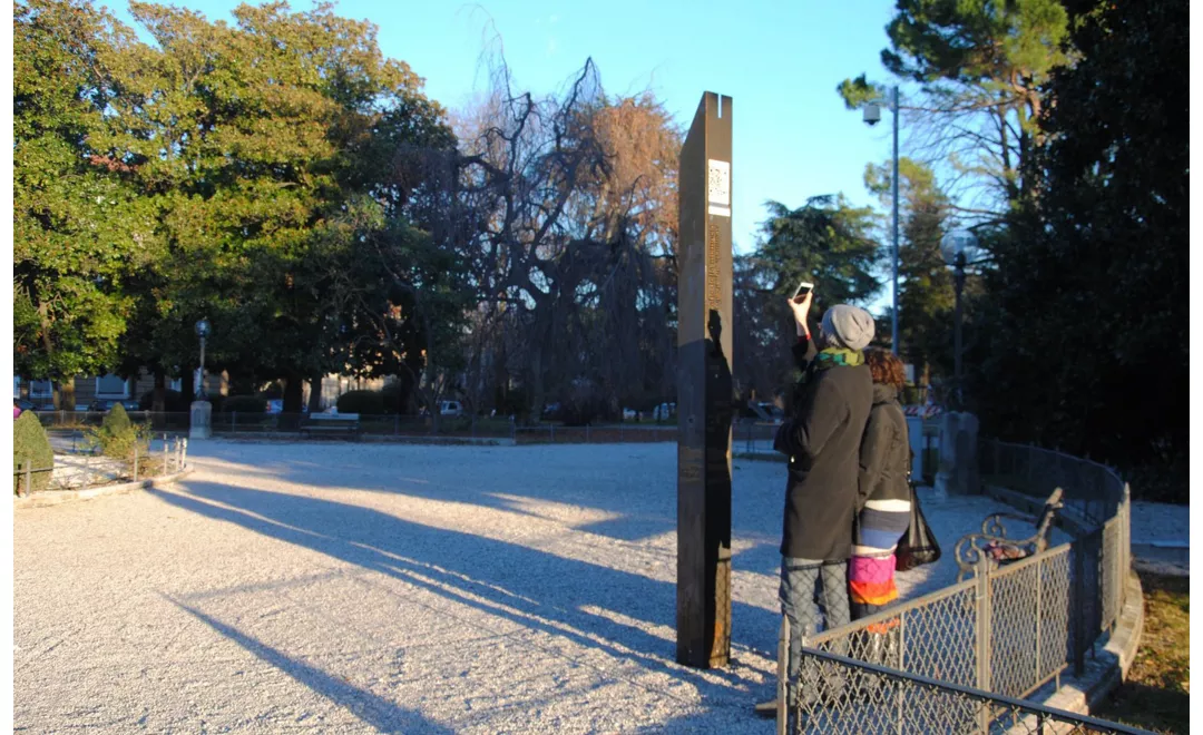 Topografie della memoria è un percorso storico, ma anche emotivo del territorio tra Gorizia e Nova Gorica. Si compone di 10 tappe (6 a Gorizia e 4 a Nova Gorica), segnalate con un totem sul quale è apposto un codice QR che consente l’accesso a una serie di contenuti multimediali e audiovisivi. Ci sono interviste, filmati e fotografie raccolti nell’ambito di un progetto che ha coinvolto i cittadini di Gorizia e Nova Gorica che hanno vissuto nell’area di confine nella prima metà del Novecento.