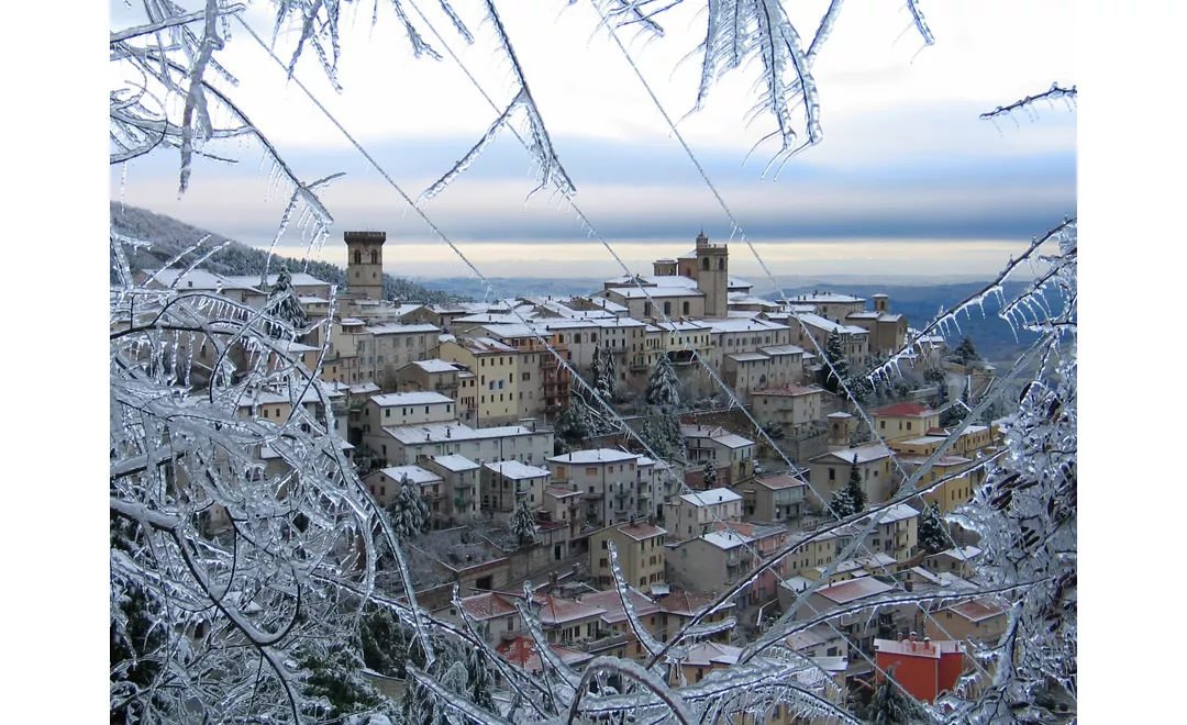 Se desiderate allontanarvi dalla frenesia delle feste, scegliete i borghi in cui l’inverno scorre lento, tra boschi silenziosi, profumo di legna e camini che scoppiettano. A Sassoferrato, in provincia di Ancona, la stagione fredda avvolge vicoli ordinati, scorci storici e sentieri che si inoltrano verso boschi tranquilli. Procedendo verso sud, Belforte del Chienti vi accoglie con la sua atmosfera raccolta: d’inverno le vie quiete, le chiese romaniche e i panorami collinari invitano a camminare senza fretta. Più giù Sarnano si presenta come una piccola bomboniera medievale, un intreccio di archi, scalinate e porte che nella stagione fredda acquisiscono un fascino ancora più intimo. Poi, le montagne chiamano: Bolognola offre la pace delle sue altitudini innevate, mentre Amandola, porta naturale dei Monti Sibillini, si adagia sulle colline e guarda verso le cime bianche, con botteghe artigiane e locali accoglienti che aggiungono calore alla quiete del paesaggio. In questi borghi la natura detta il ritmo e ogni esperienza sembra amplificarsi: una passeggiata nel bosco, una sosta in rifugio, una tazza di cioccolata davanti al camino. Nelle trattorie, la cucina locale vi aspetta con piatti caldi e sapori genuini.