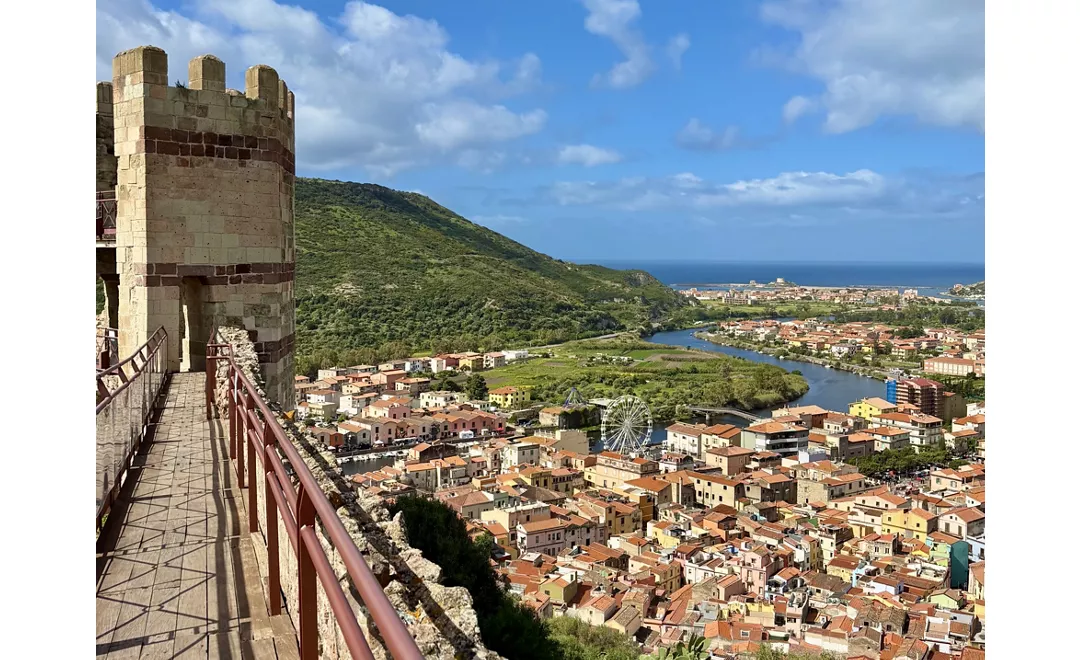 La partenza è a Bosa, la ‘città dei colori’ affacciata sull’unico fiume navigabile della Sardegna, il Temo. Tra i vicoli scenografici del quartiere storico di sa Costa, sotto l’imponente castello dei Malaspina (XII sec.), respiri storia, artigianato e un’identità vivace. Il patrimonio è ricco: la cattedrale dell’Immacolata con gli affreschi, le antiche concerie lungo il fiume (oggi museo), la chiesa di Nostra Signora de sos Regnos Altos dentro le mura, e poco fuori la romanica San Pietro extra muros. Sulla foce del Temo si apre Bosa Marina, premiata ogni anno per la qualità del mare, base ideale per una sosta tra chioschi e passeggiate al tramonto. Il viaggio enogastronomico inizia qui: entra in una bottega o in una cantina per assaggiare la Malvasia di Bosa DOC, magari con il bistokku, il pane tipico locale. Arrivo consigliato: Modolo.
