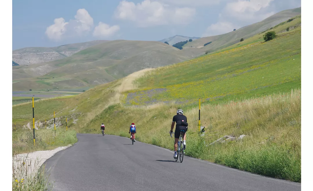 É a natureza virgem dos Montes Sibillini, com o Parque Nacional com o mesmo nome, o cenário deste percurso curto e de média dificuldade destinado a ciclistas experientes, que alterna asfalto e terra batida para percorrer em bicicleta de montanha ou e-mtb. Serpenteia pelas encostas do Monte Vettore, com partida e chegada em Castelluccio di Norcia, seguindo por vezes o Caminho de Bento, nos lugares do santo de Norcia. A época ideal para o fazer é definitivamente entre junho e julho, quando a Planície de Castelluccio oferece o espetáculo imperdível da prodigiosa e perfumada floração multicolorida.